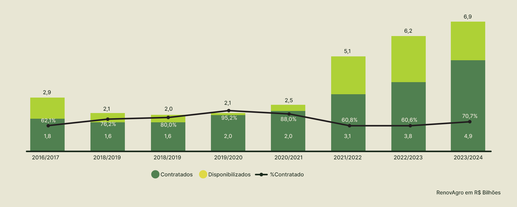 A própria Linha ABC tem ficado historicamente abaixo do montante disponibilizado, com aprox. 70% de contratação na safra 23/24, o que pode significar baixo conhecimento por parte do produtor.